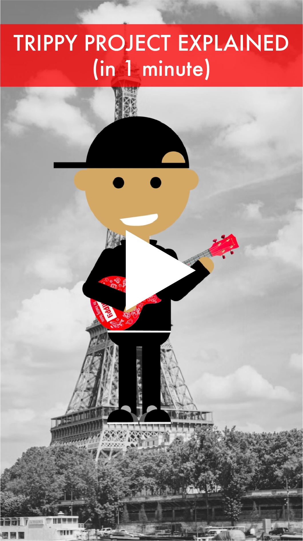 Trippy wants to connect the world through music and culture, and for people to see the human experience through the eyes of artists, musicians, and interesting characters from around the world. The idea came from Trippy’s human (Alex), who was inspired by Anthony Bourdain’s ability to use food as a gateway into culture. This project aims to do the same, but using art and music instead of food.